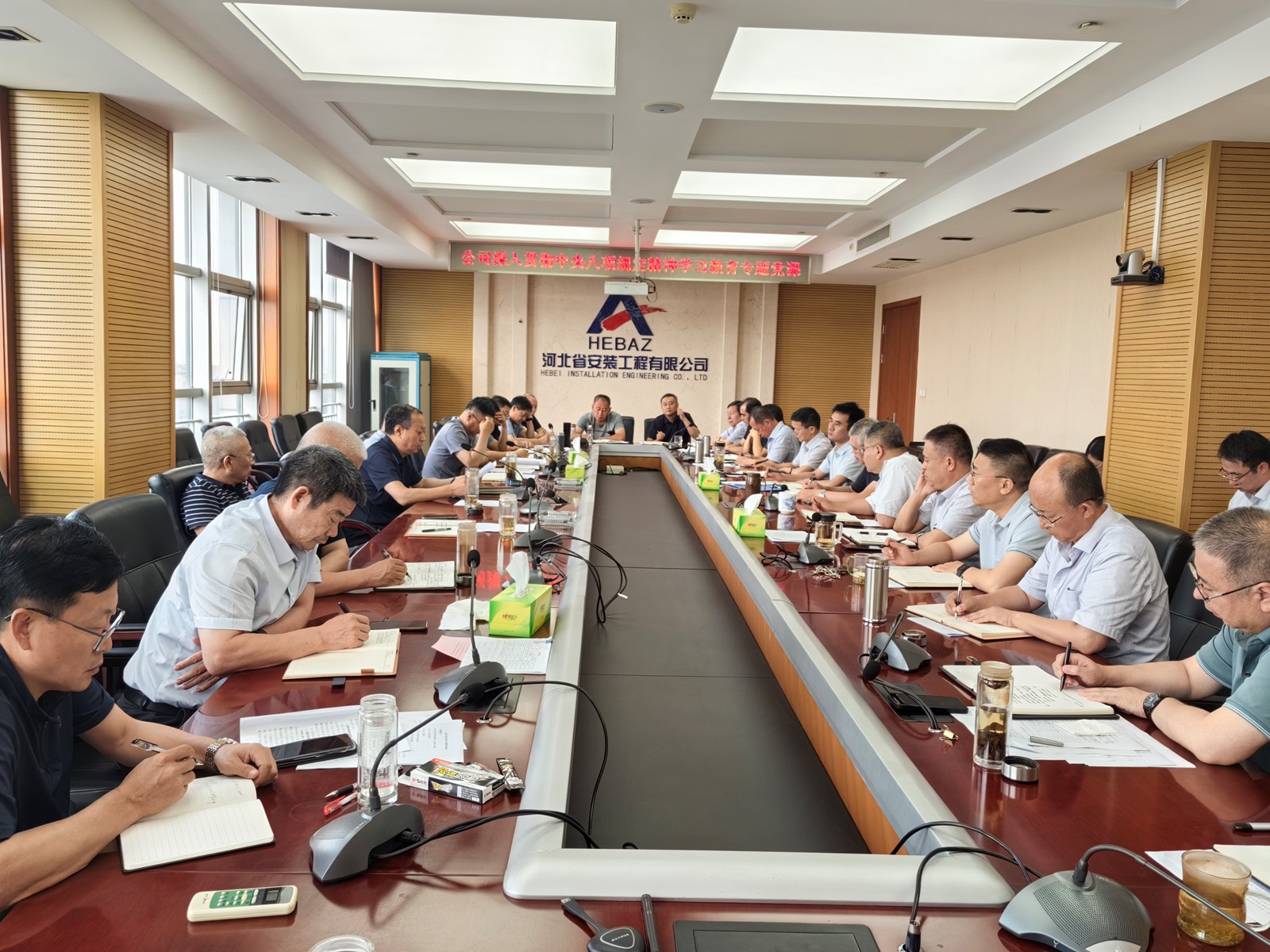 2025年9月3日,為紀(jì)念中國(guó)人民抗日戰(zhàn)爭(zhēng)暨世界反法西斯戰(zhàn)爭(zhēng)勝利80周年,河北省安裝工程有限公司積極組織職工集中觀看閱兵盛況直播。公司機(jī)關(guān)及各分公司、項(xiàng)目部共計(jì)2000余人通過(guò)多種方式同步參與,共同回顧歷史、緬懷先烈、展望未來(lái)。上午9時(shí),習(xí)近平總書(shū)記發(fā)表重要講話,9時(shí)19分大閱兵正式開(kāi)始,公司機(jī)關(guān)及各分公司、項(xiàng)目部會(huì)議室座無(wú)虛席,職工們們整齊地坐在屏幕前,神情莊重地注視著電視畫(huà)面。在閱兵式過(guò)程中,